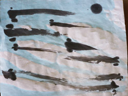 めだか 水墨彩色描画