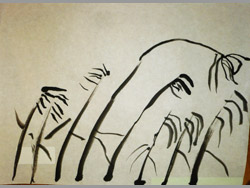 すすき 水墨彩色描画