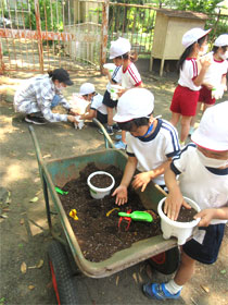 園児は動植物の世話をよくいたします。他を愛する心、思いやる心は実践